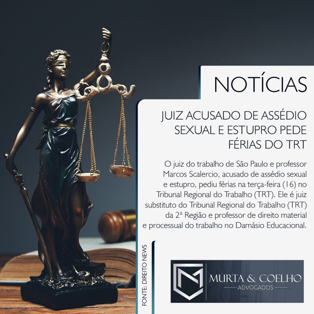 O juiz do trabalho de São Paulo e professor Marcos Scalercio, acusado de assédio sexual e estupro, pediu férias na terça-feira (16) no Tribunal Regional do Trabalho (TRT). Ele é juiz substituto do Tribunal Regional do Trabalho (TRT) da 2ª Região e professor de direito material e processual do trabalho no Damásio Educacional. “O juiz substituto Marcos Scalércio requereu férias a partir de hoje e encontra-se afastado de suas atividades no Tribunal”, afirmou o TRT em nota. De acordo com o G1, nesta semana, 30 novas mulheres procuraram a ONG Me Too com novos relatos de casos de assédio por parte de Scalercio. Uma vítima, de 29 anos, também alegou ter sido estuprada pelo professor. Ao menos 10 casos foram encaminhados para os órgãos competentes pelo Projeto Justiceiras. O juiz nega as acusações e diz que já foi absolvido pela corregedoria do TRT e teve denúncias arquivadas. De acordo com os relatos das vítimas, os crimes teriam acontecido tanto de forma presencial quanto virtual. As mulheres acusam o magistrado de enviar mensagens de teor impróprio, aparecer se masturbando em vídeo chamadas e beijá-las à força – o que, inclusive, teria acontecido no gabinete do juiz, nas dependências do Fórum Trabalhista Ruy Barbosa, na Barra Funda – SP.